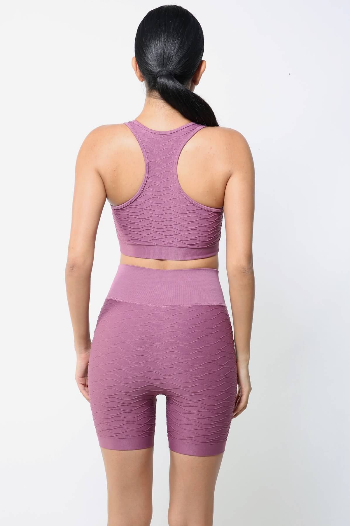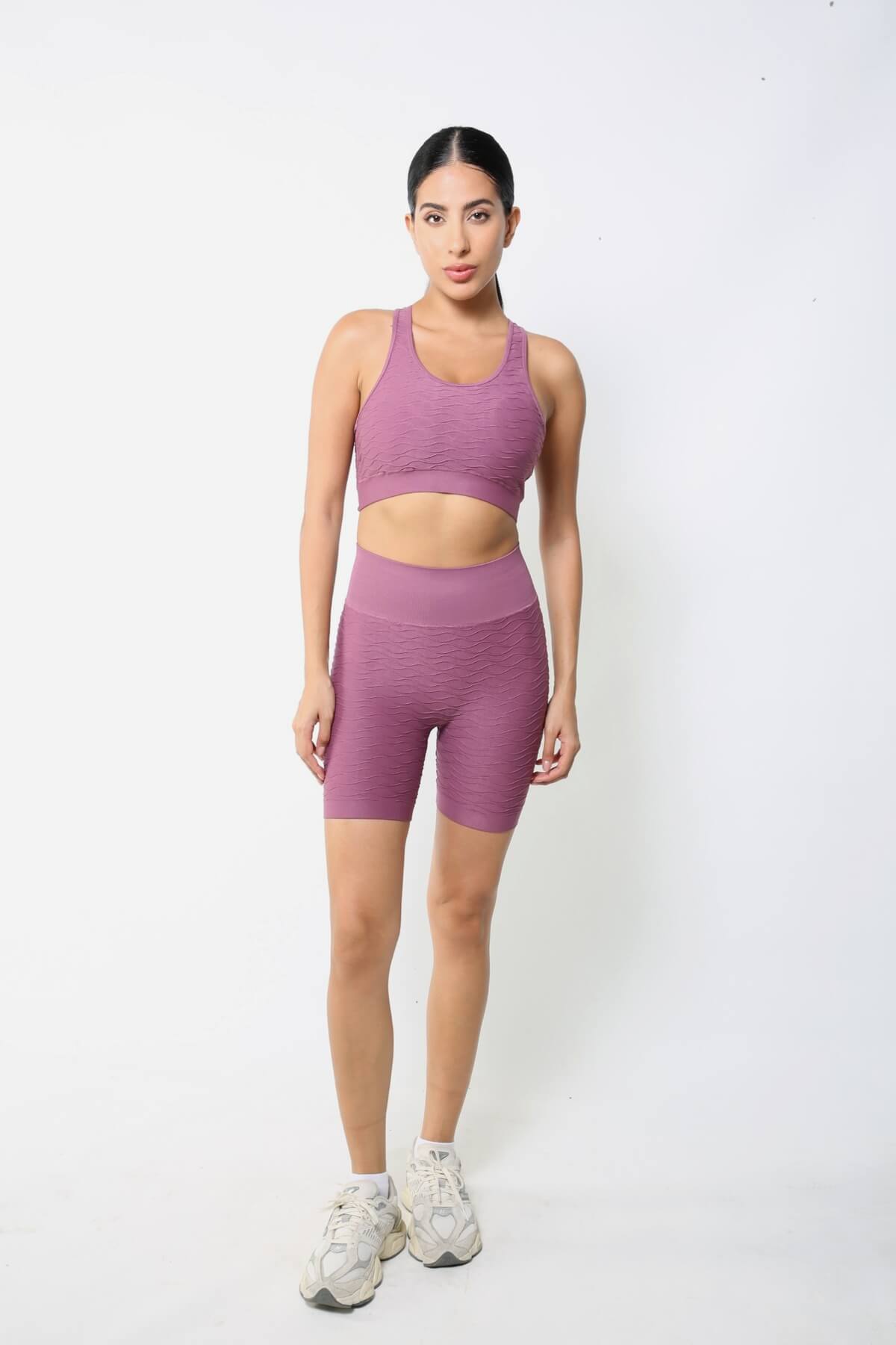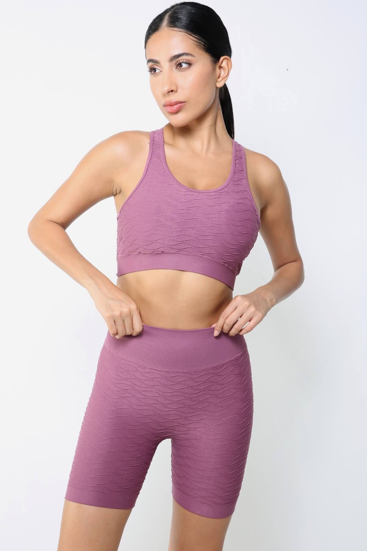 Gül Kurusu Yüksek Bel Dikişsiz Spor Şort, hem spor yaparken hem de günlük kombinlerinizde şık ve rahat bir deneyim sunar.